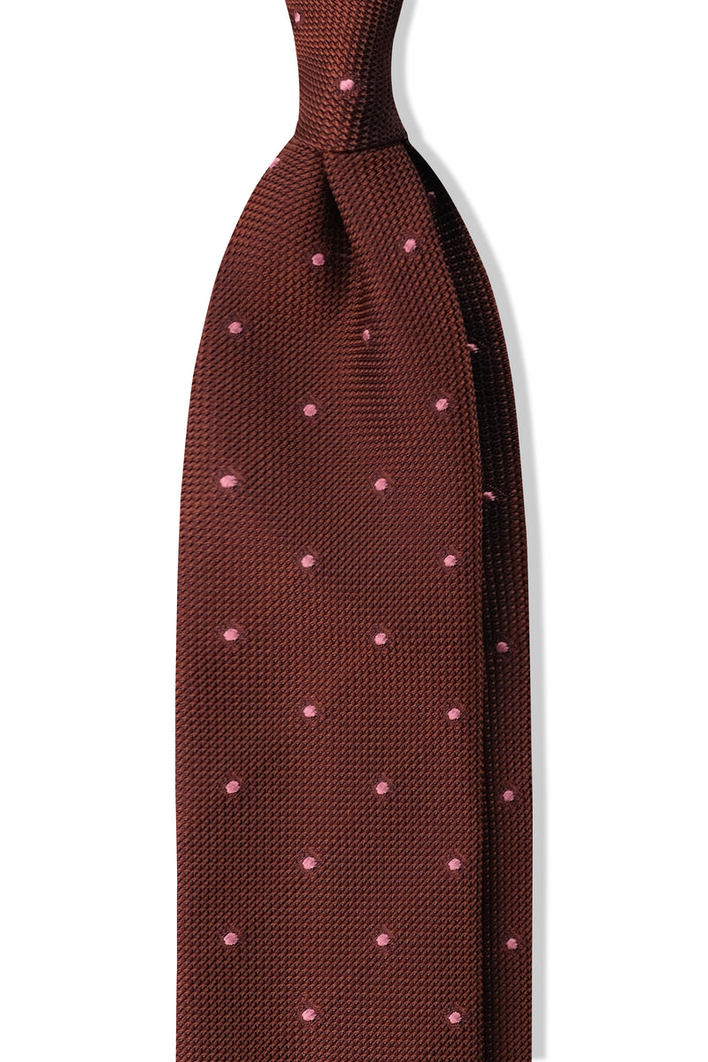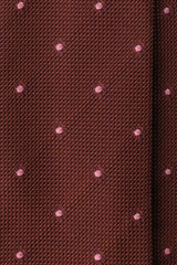 3-Fold Polka Dot Silk Grenadine Jacquard Tie - Rust/Pink