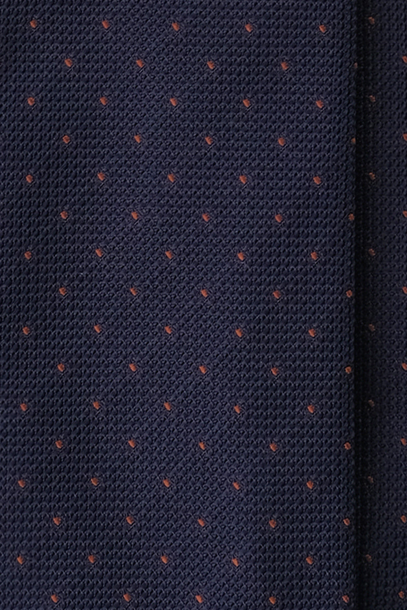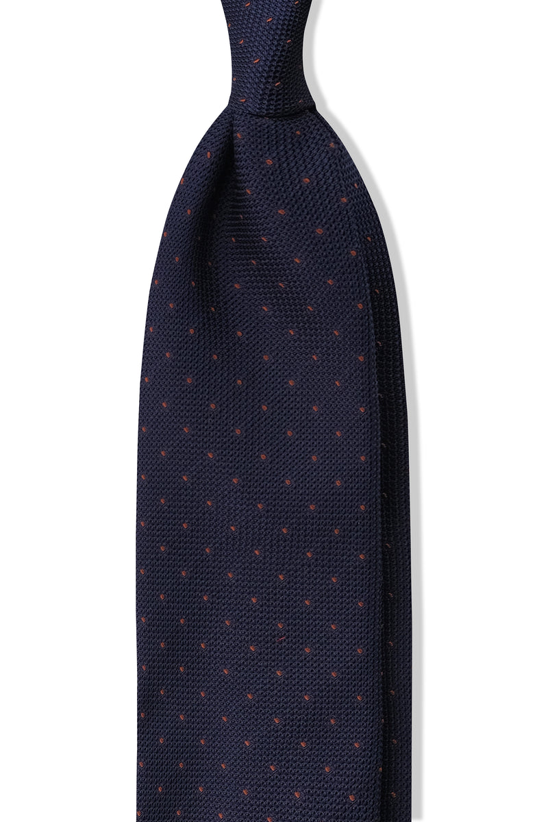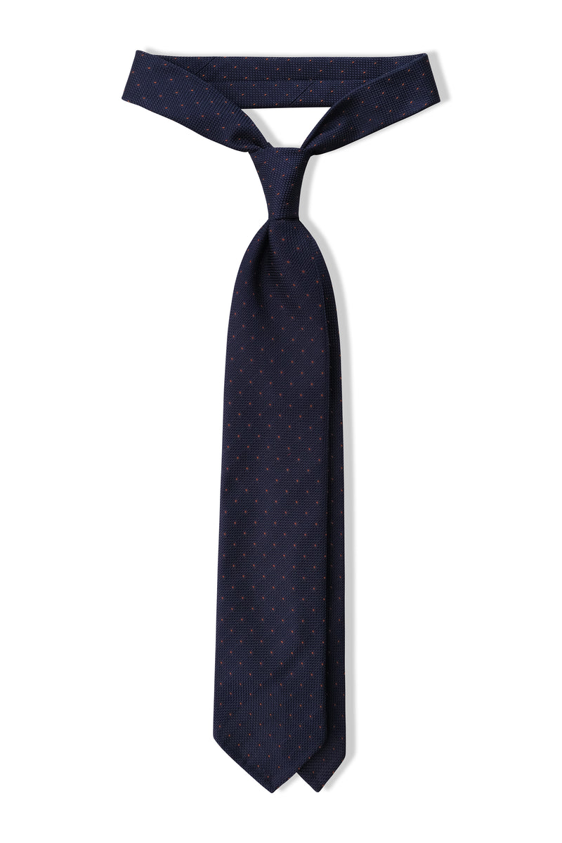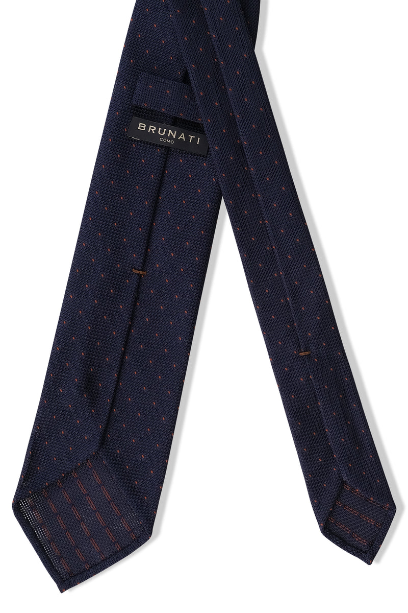 3-Fold Silk Grenadine Pindot Tie - Navy/Brown