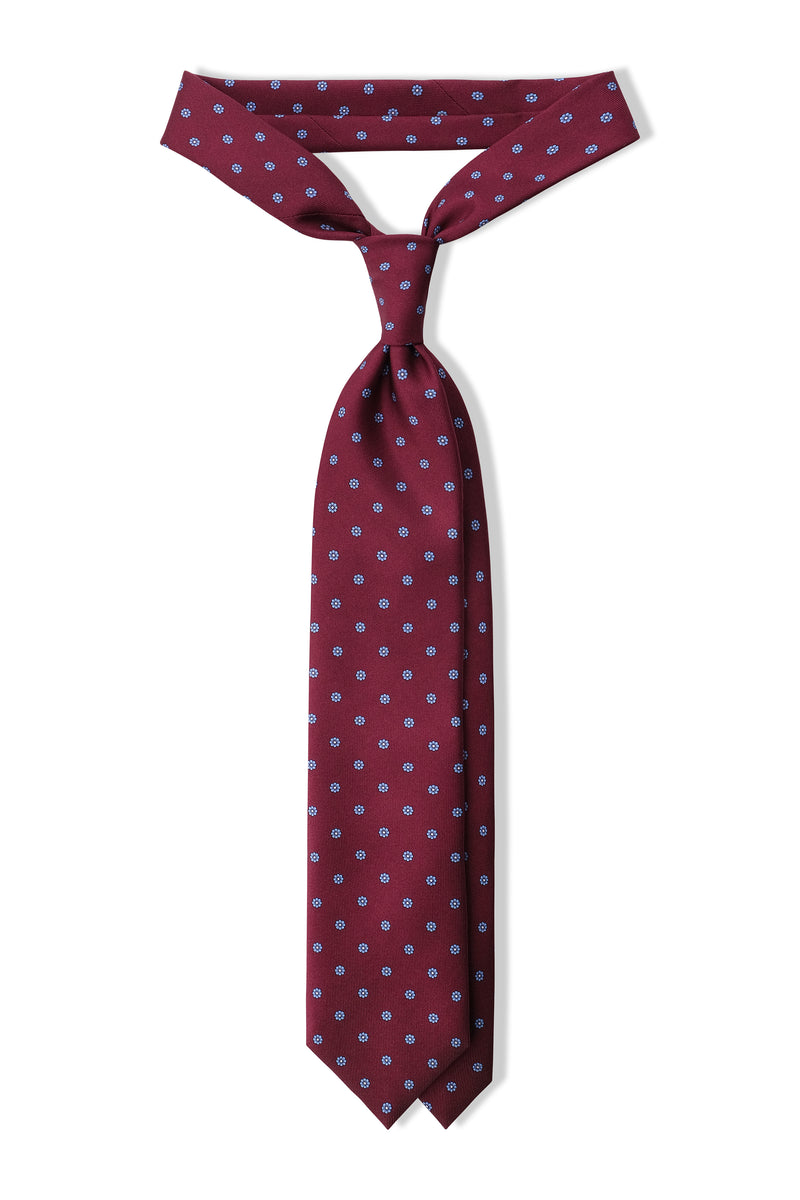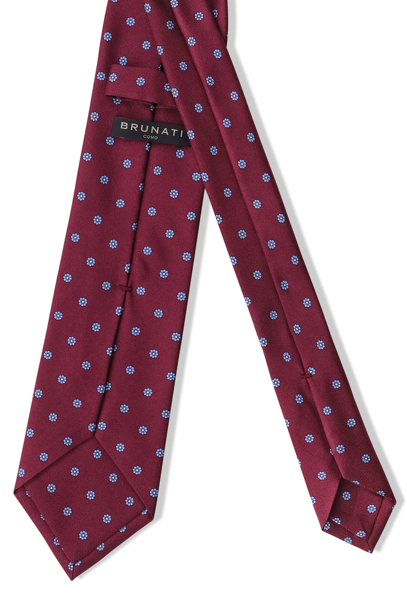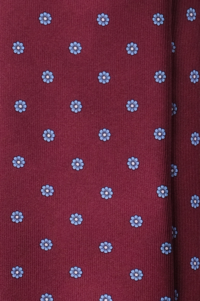 3-Fold Floral Printed Silk Tie - Burgundy/Light Blue/White