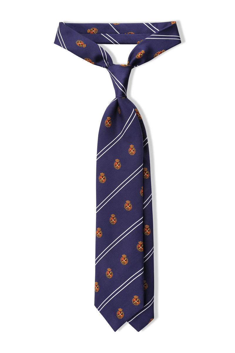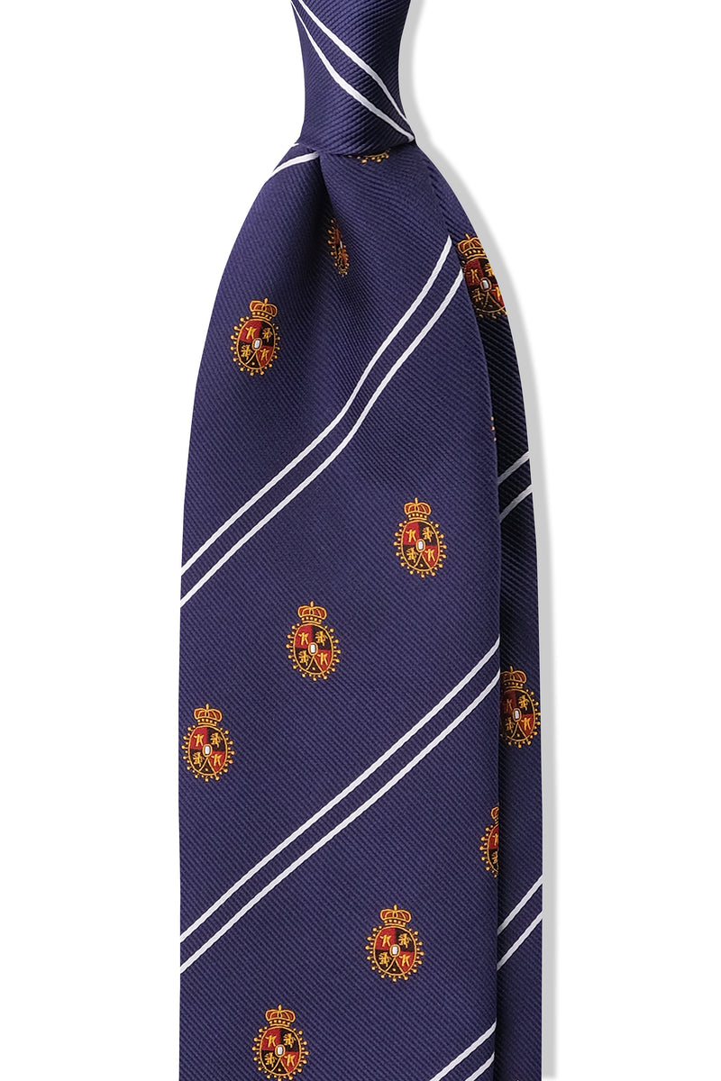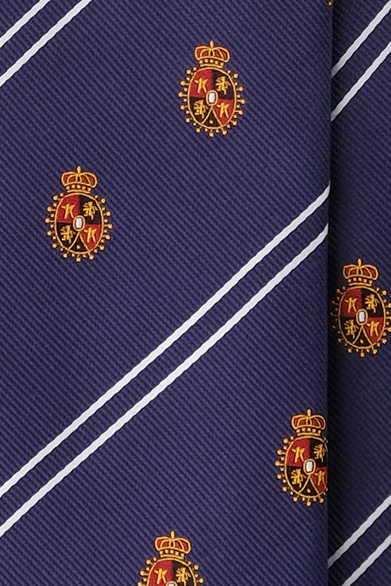 A classic silk tie featuring a heraldic motif inspired by traditional emblems. While decorative in nature, these symbols reflect the timeless elegance and historic richness of heraldry.